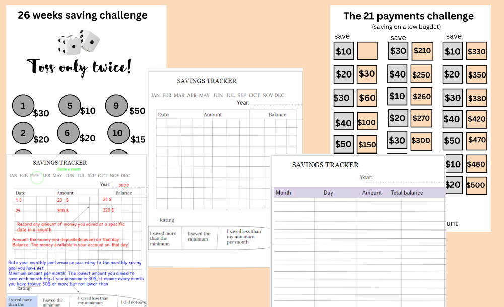 29 payment challenge+ savings tracker+ guide on how to use the tracker, 21 payment challenge plus savings plan
